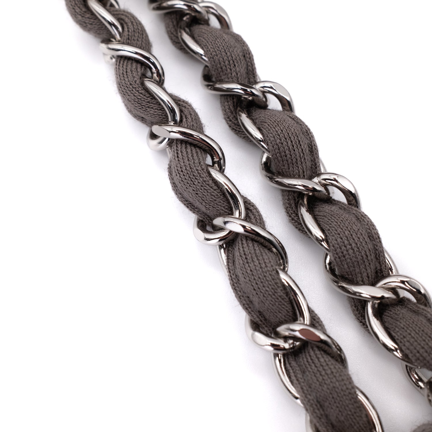Diese zeitlose Chanel Double Flag Bag Medium aus taupe/anthrazitfarbenem Jersey Material und silberfarbener Hardware, stammt aus dem Produktionszeitraum 2010-2011 und ist in einem sehr guten Pre-Loved Zustand mit minimalen Makeln. Sie kann lang und kurz über die Schulter sowie Crossbody getragen werden und wird im Set mit Chanel ID-Authentizitätskarte, Chanel Box, Chanel Staubbeutel sowie einem Chanel Booklet und Chanel Schleifenband geliefert.