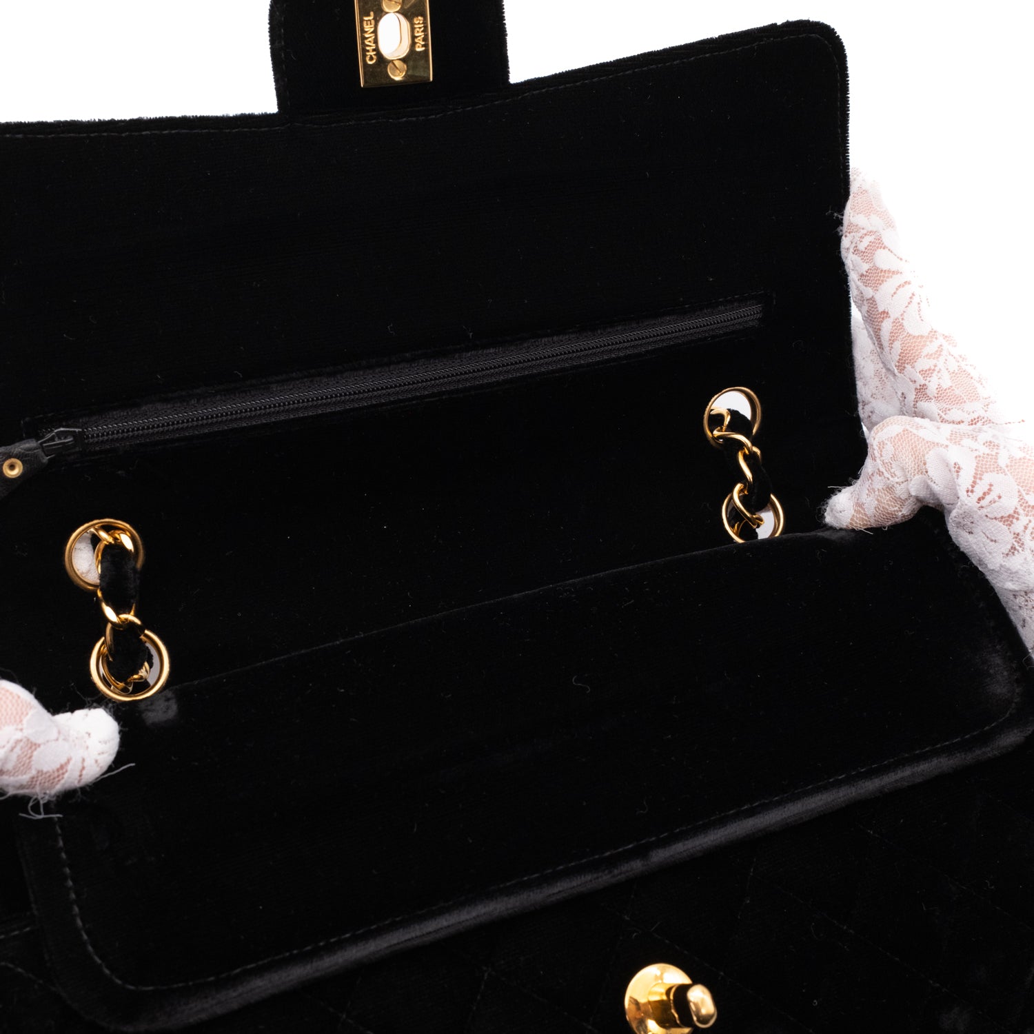 Chanel Classic Medium Double Flap Samt Schwarz 24k GHW